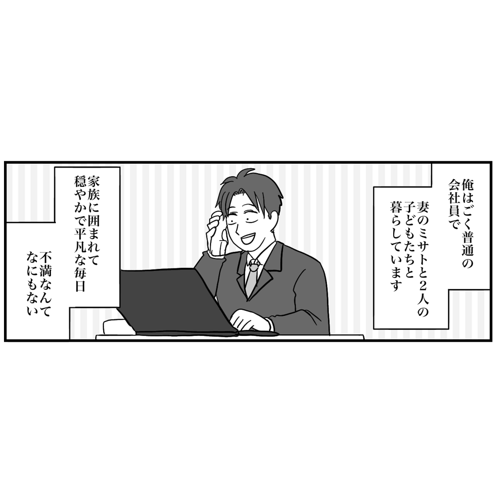 妻のミサト(35歳)と2人の子どもたちとの4人家族です。穏やかな毎日ではありますが、これといった刺激もなく同じことを繰り返す生活を送っています。